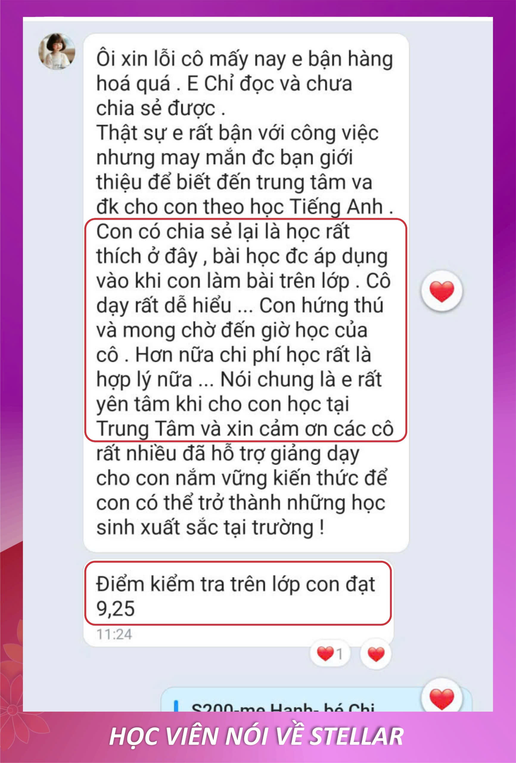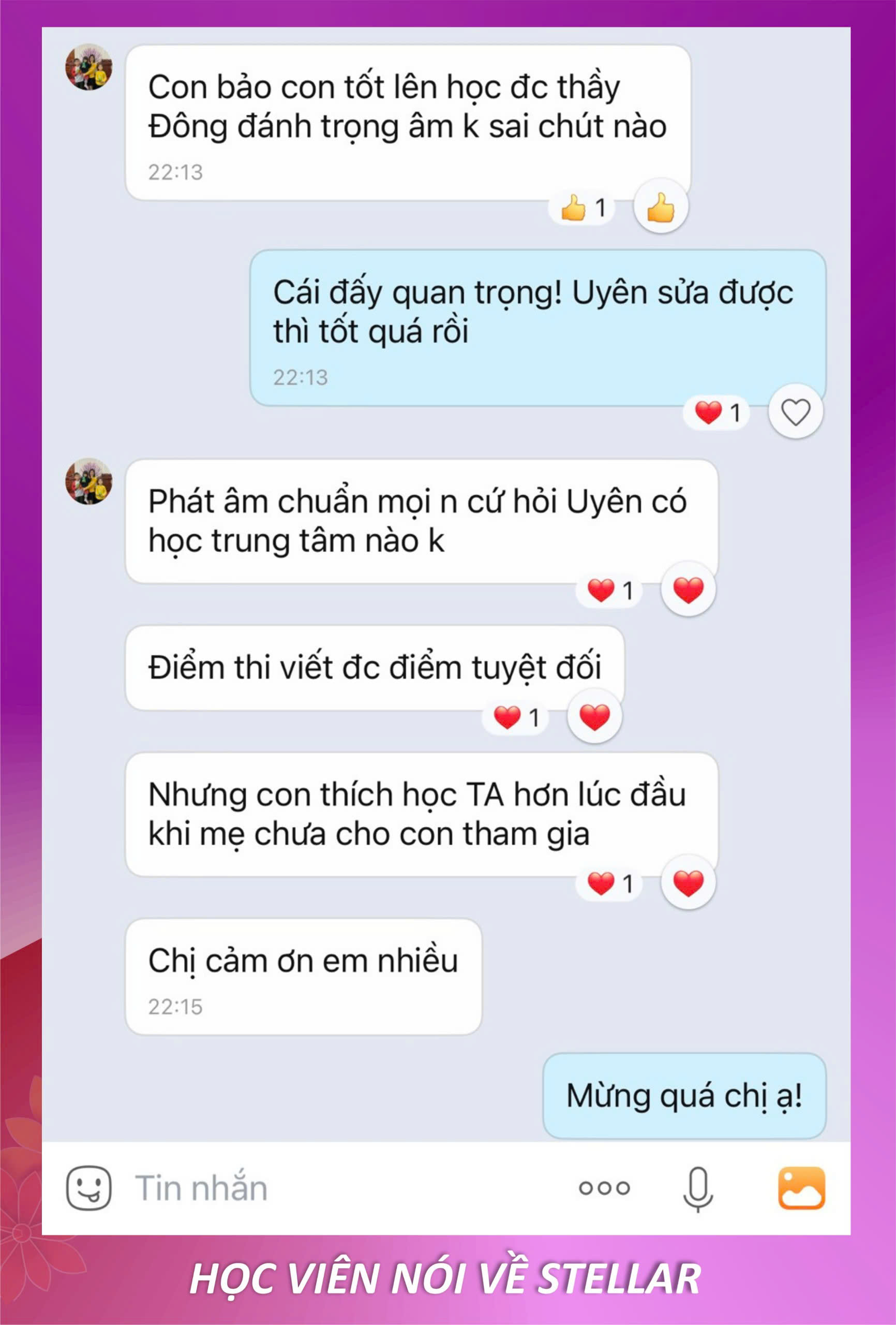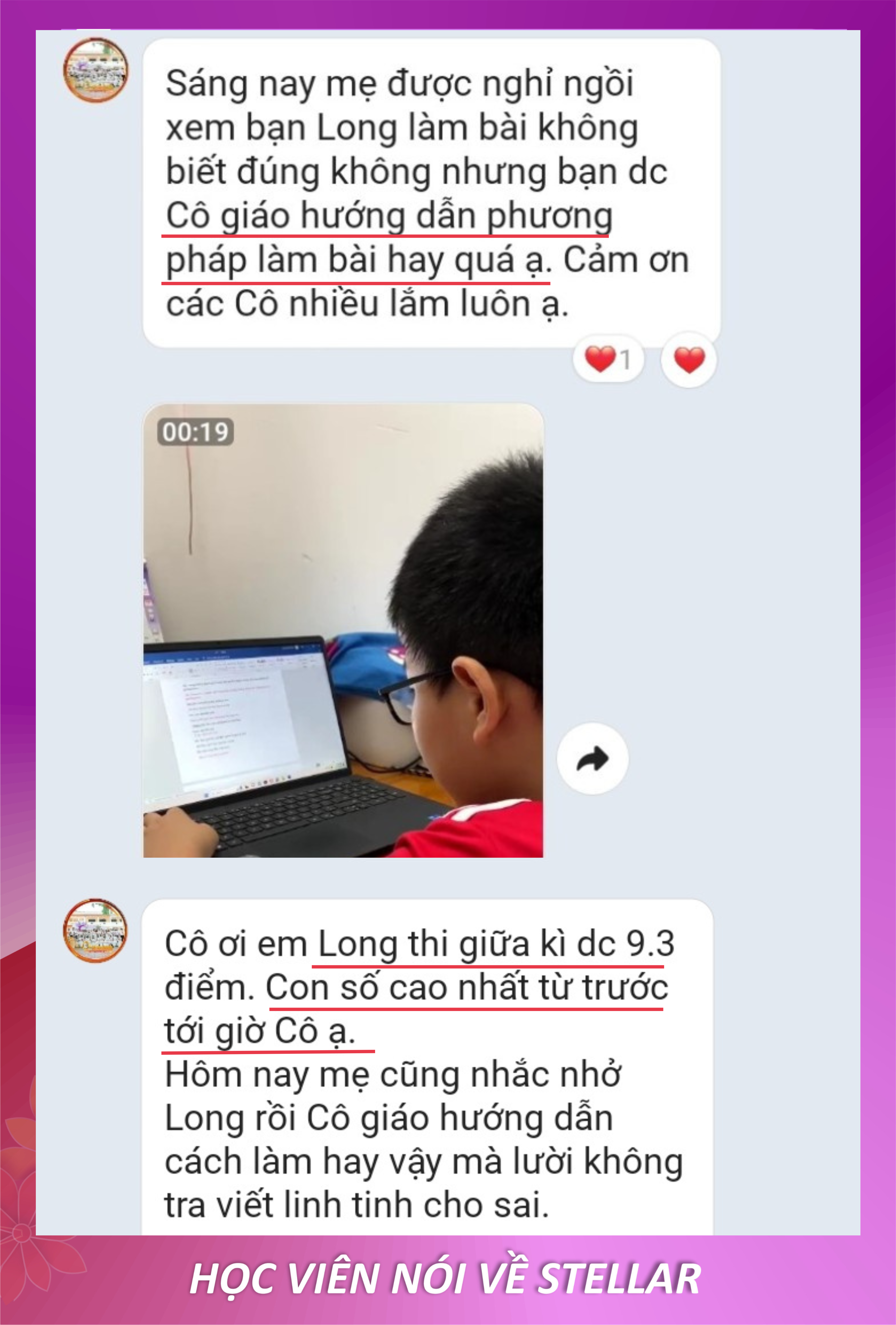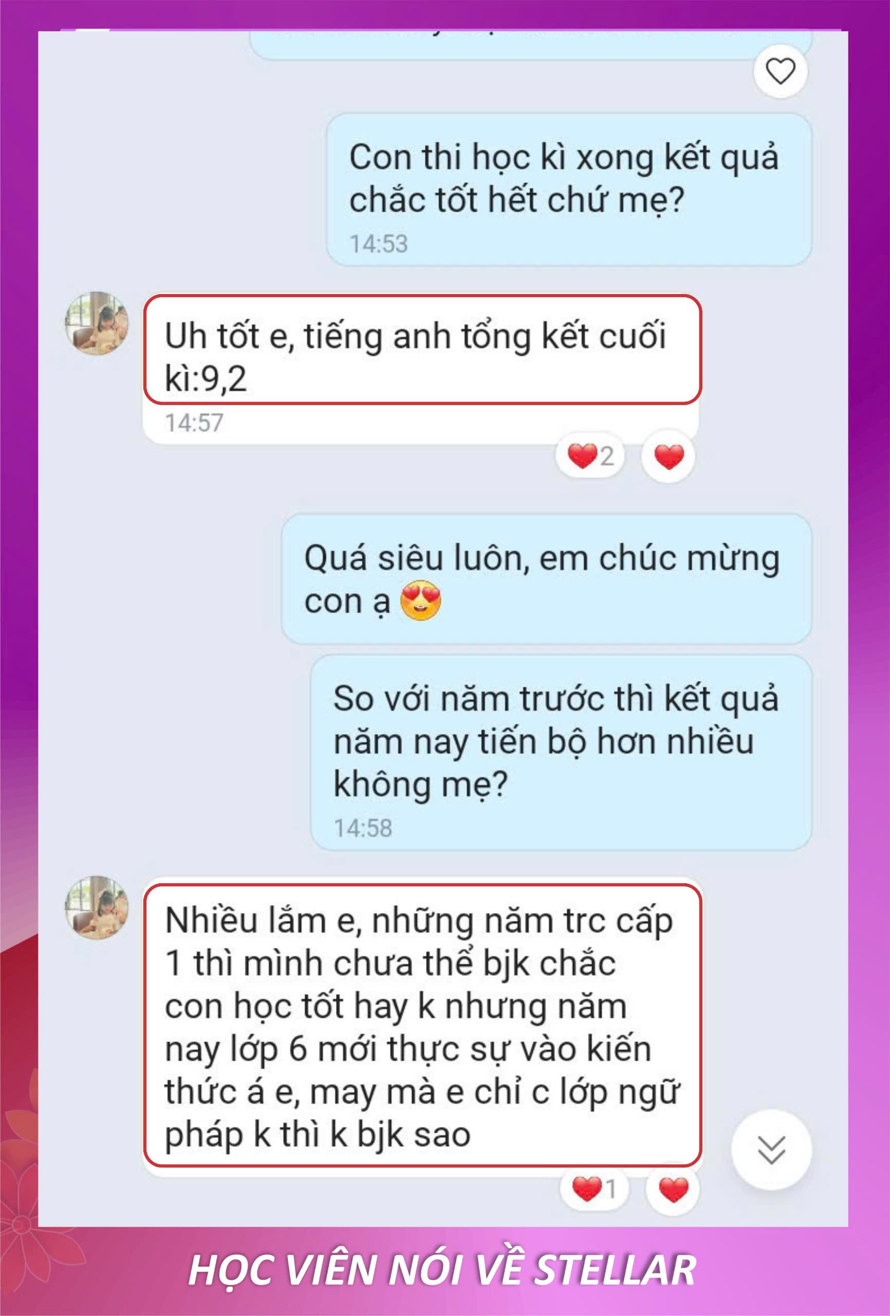 Con tiến bộ và ba mẹ hài lòng là niềm vui của Stellar