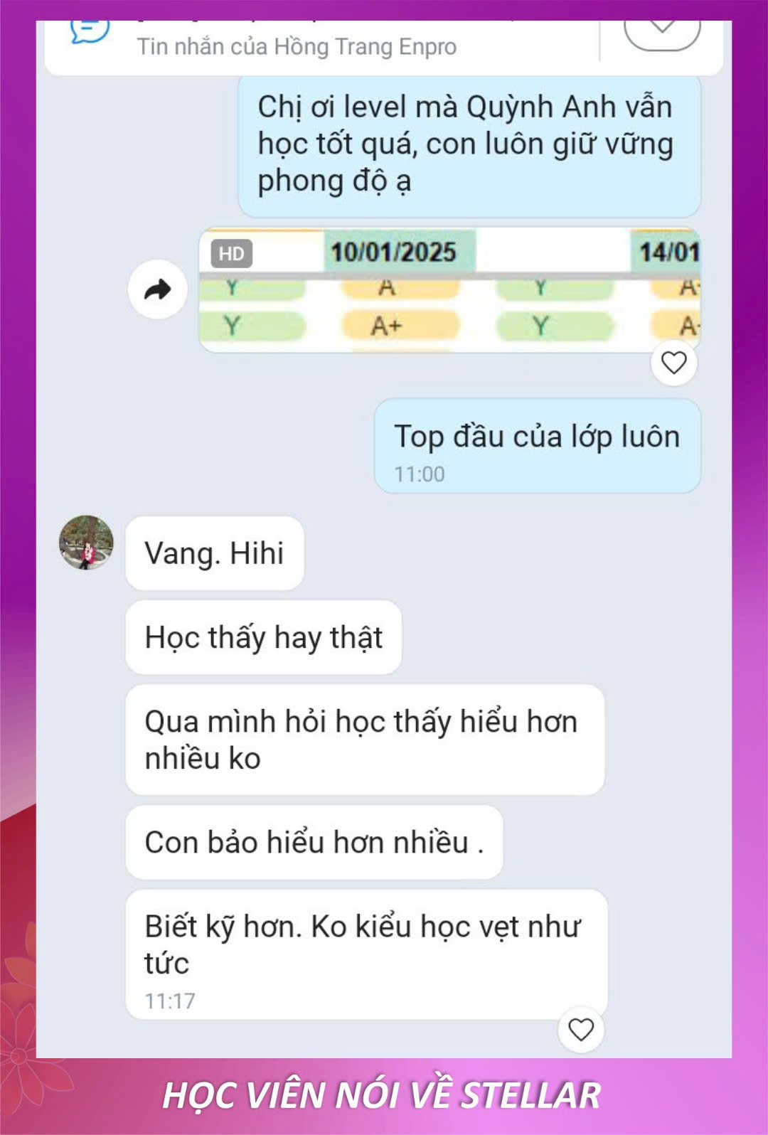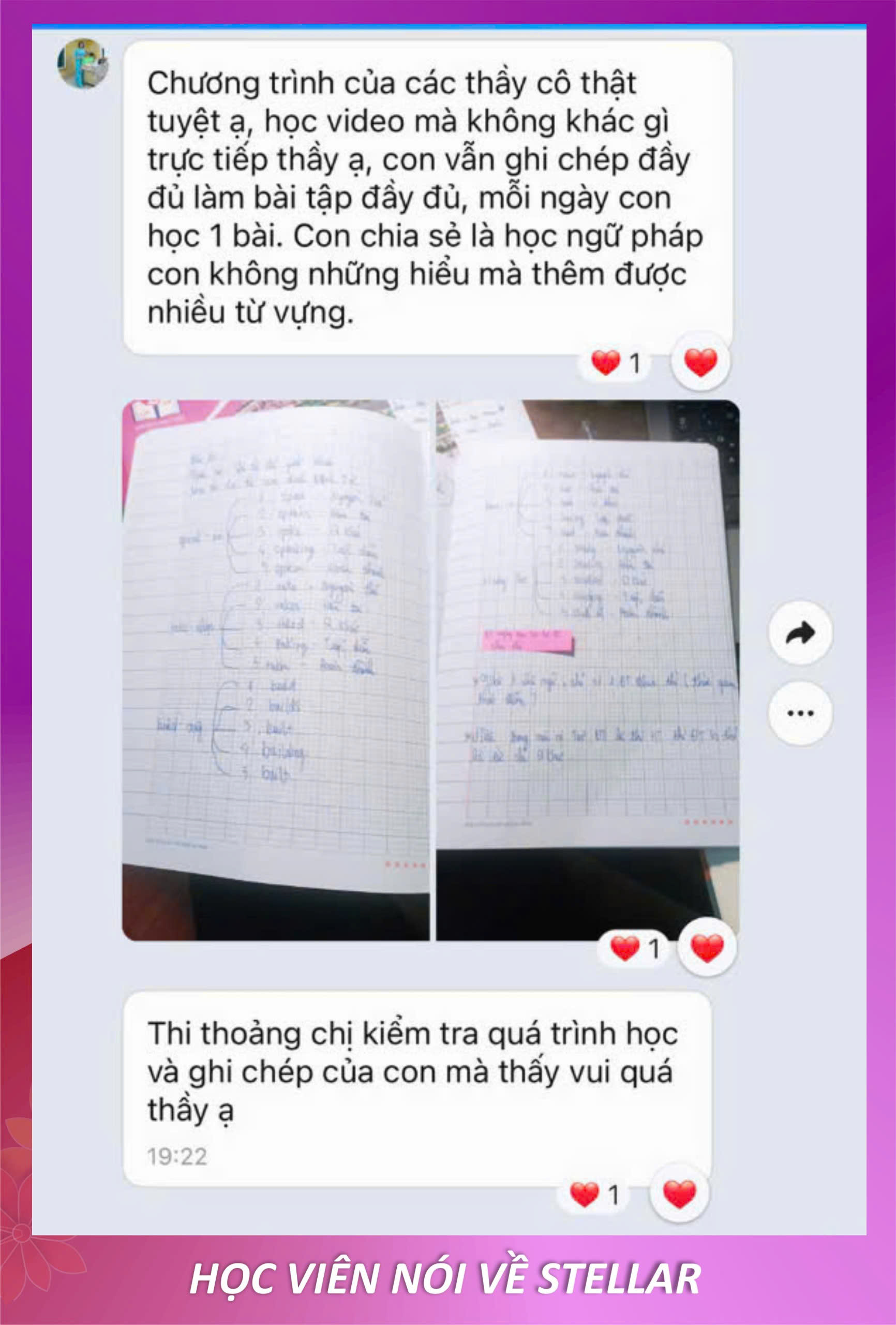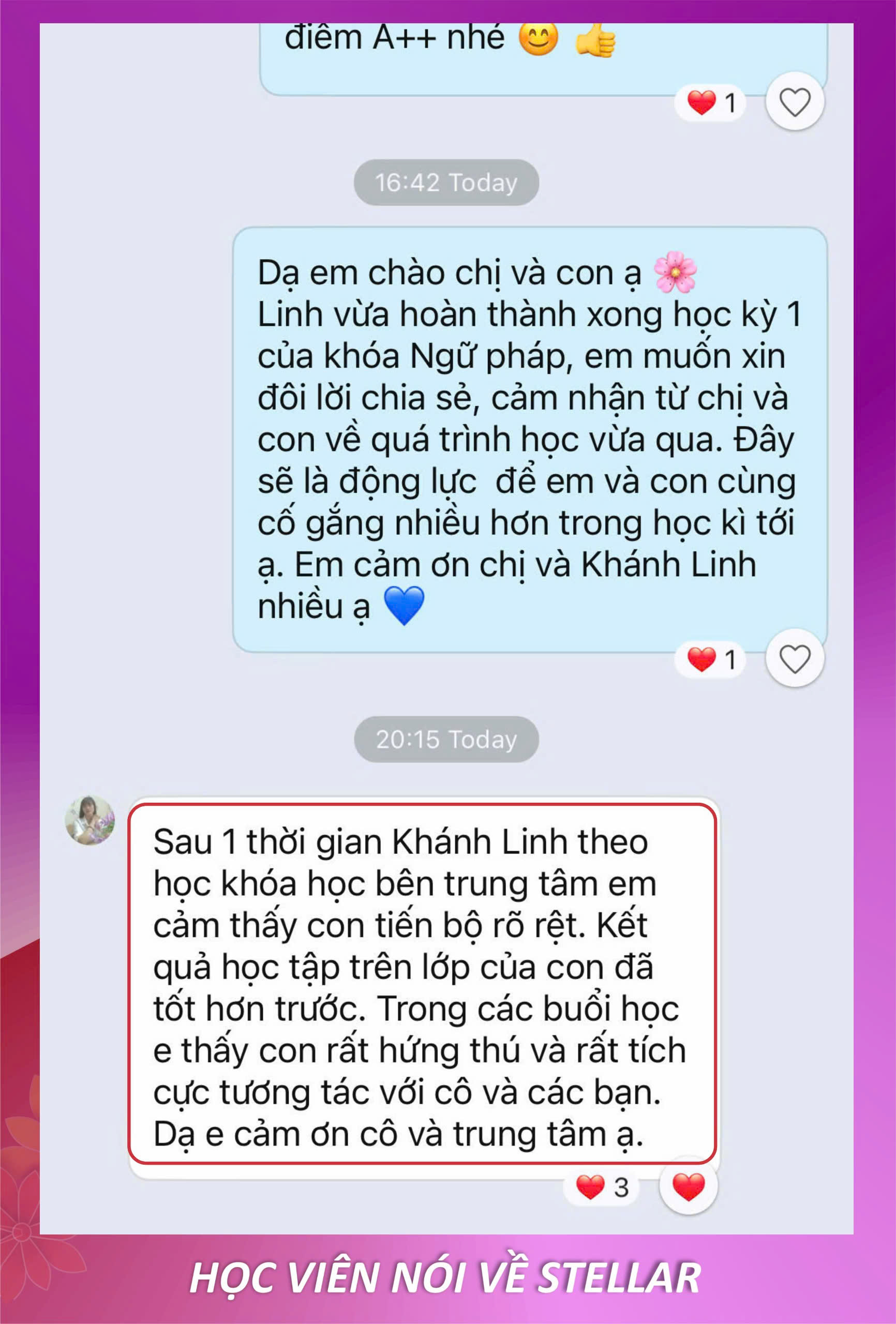 Con tiến bộ và ba mẹ hài lòng là niềm vui của Stellar