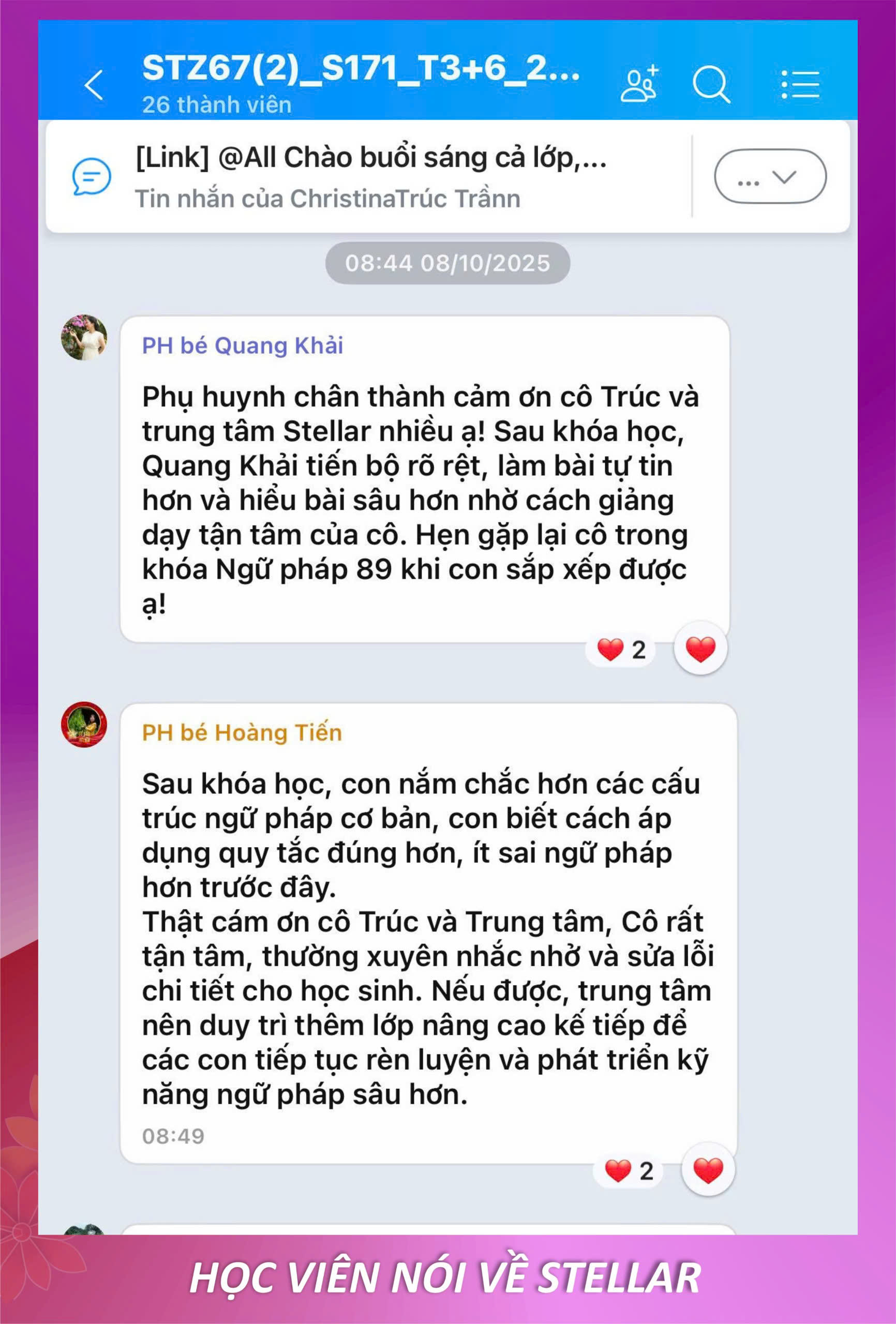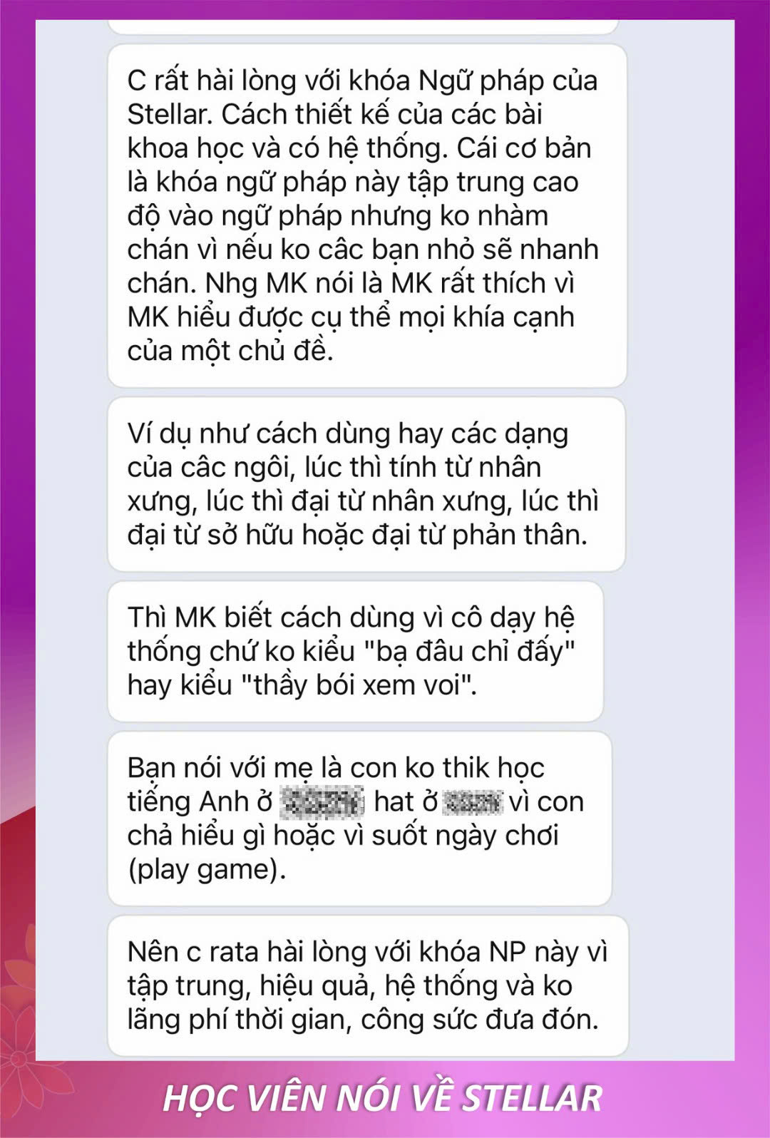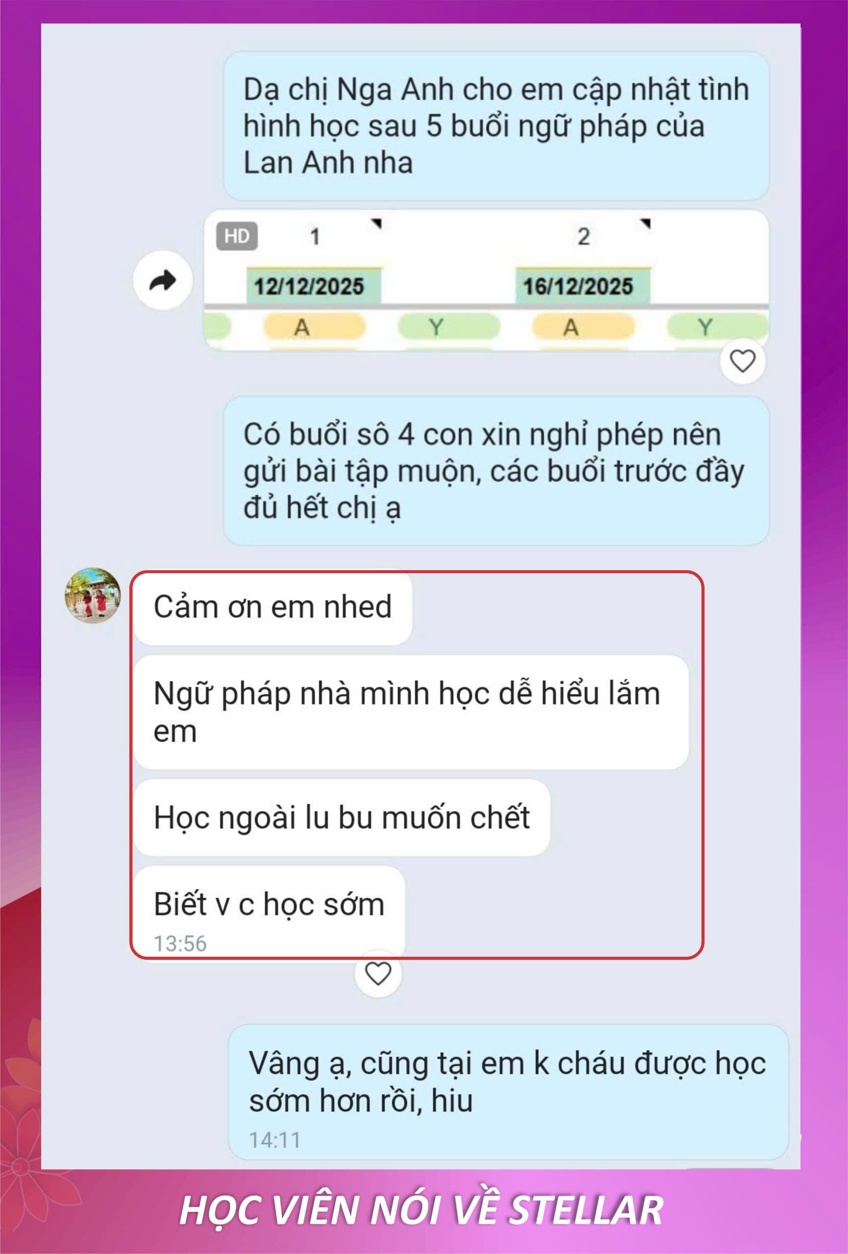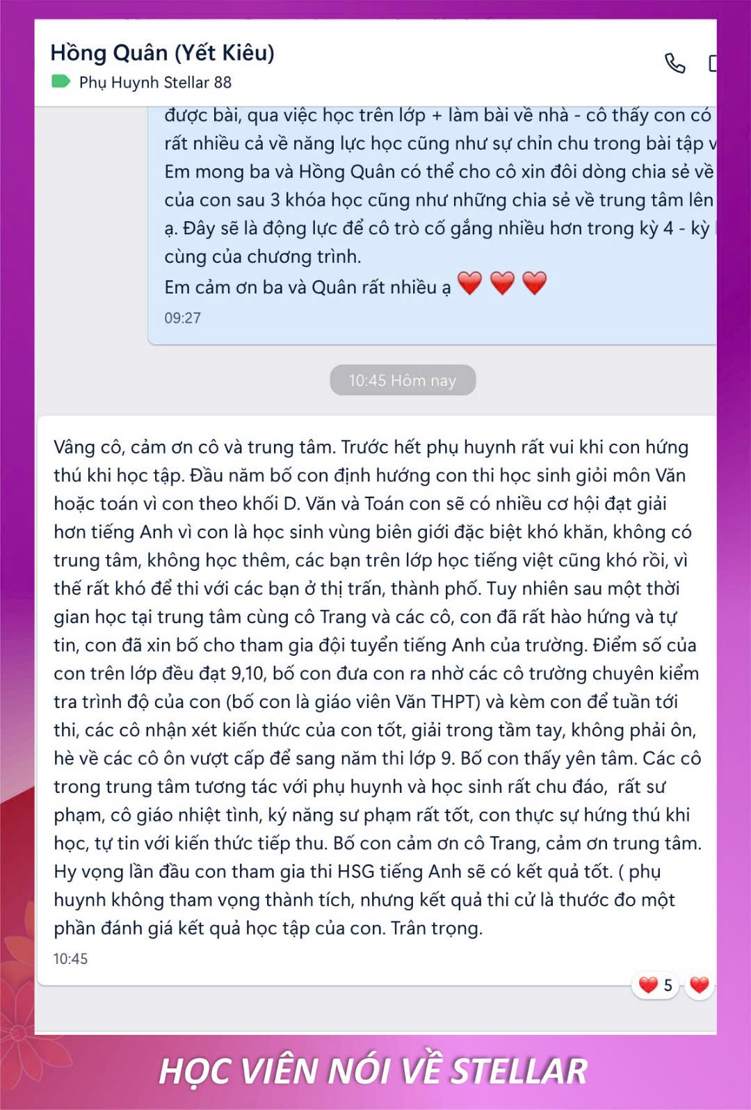 Con tiến bộ và ba mẹ hài lòng là niềm vui của Stellar