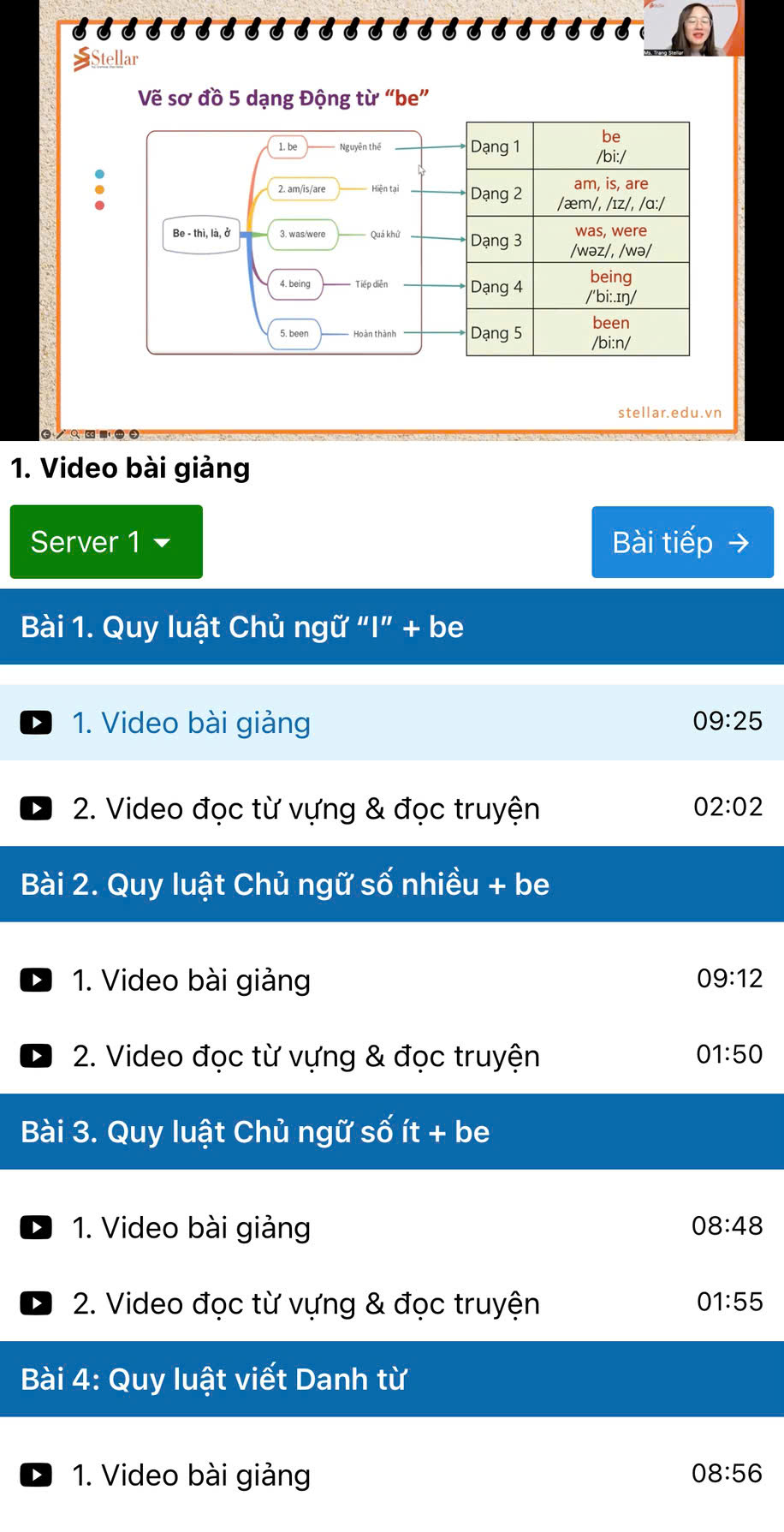 2️⃣ Mỗi bài học gồm 1 video bài giảng và 1 video đọc từ vựng, đọc truyện;